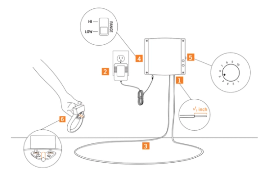 Unplug the power adaptor from the wall. Unhook the fence wire from the wall transmitter. Remove the transmitter from the wall and lay it on the ground. Insert the test wire into the terminals on the bottom of the transmitter. Lay the wire in a large loop to avoid signal cancellation.