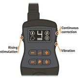 Modes 9 and 10 allow you to program Rising Stimulation, Continuous Correction, and Tone or Vibration. Rising Stimulation is a Continuous Correction, however the longer you press the button, the stronger the correction gets. This option is an excellent way to program a boost for a dog with a high prey drive.